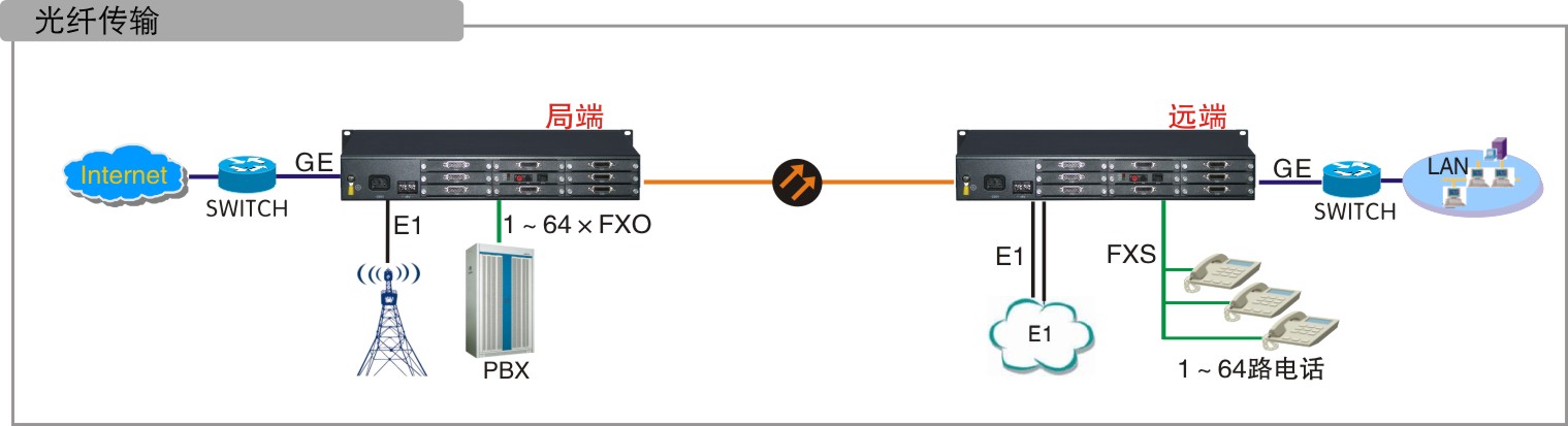 多種傳輸方式:包括E1傳輸、光纖傳輸,支持點對點/星形/鏈形結(jié)構(gòu)